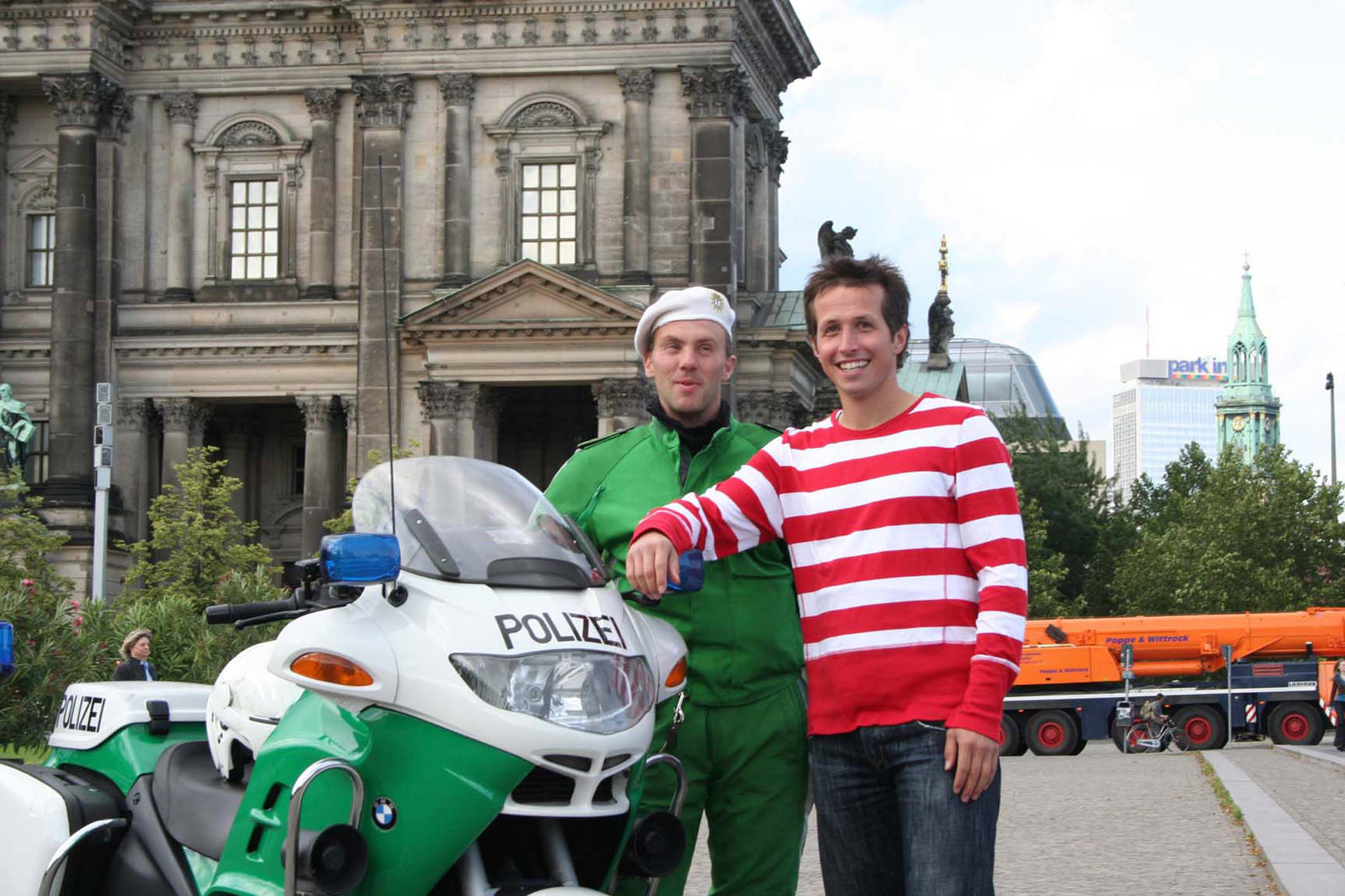 Los geht's auf Motorradfahrt!Willi mit Polizisten der Motorradsportgruppe aus Berlin.Bild: © Bayerischer Rundfunk/megaherz gmbh