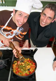 Essen ist fertig!Willi bruzelt mit Kochlehrer Reinhard Angerer ein leckeres Essen im Kochstudio.Bild: © BR/megaherz gmbh