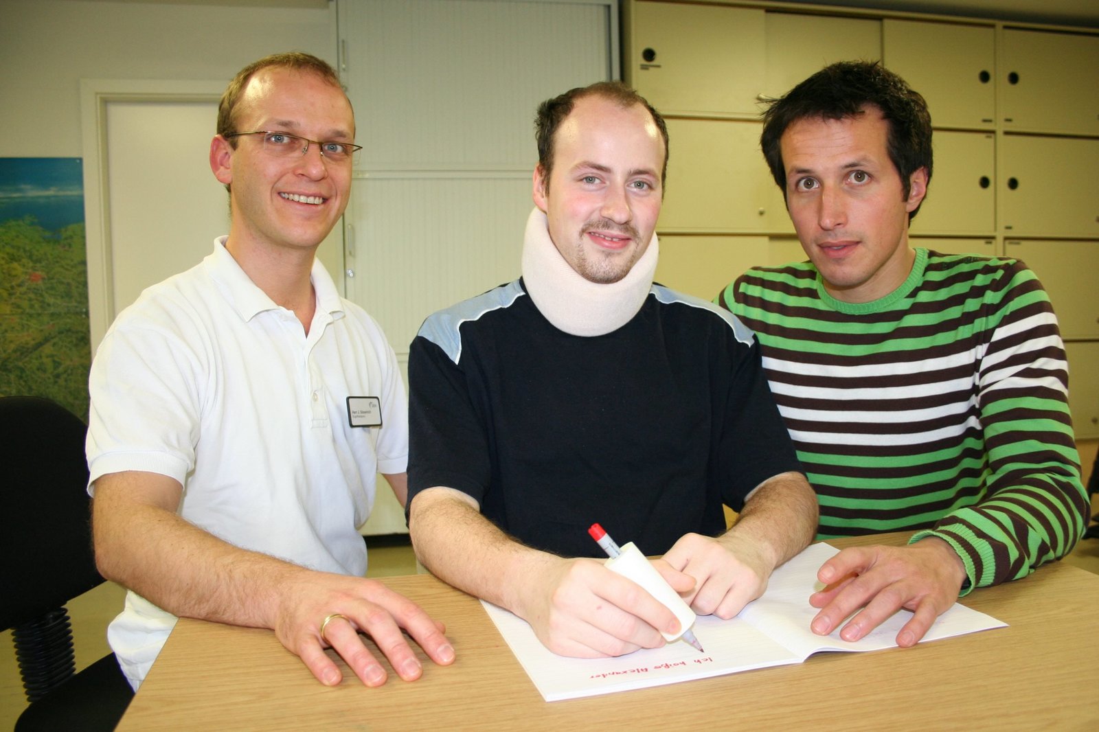 Was geht im Rollstuhl?Willi im Klinikum Karlsbad-Langensteinbach. Hier erfährt er viel über Krankheiten und die Behandlungsmethoden. Von links: ein Arzt, Alex und Willi.Bild: © BR/megaherz gmbh