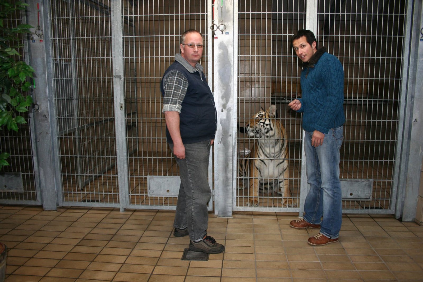 Achtung, wilde Miezekatzen!Willi mit Tierpfleger Norbert Schmitt in der Raubkatzenauffangstation in Ansbach-Wallersdorf. Hier leben Tiger, Pumas und ein Ozelot.Bild: © BR/megaherz gmbh