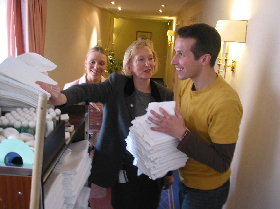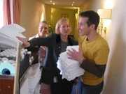 Wo gibt's Luxus noch und nöcher?Willi Weitzel hilft dem Zimmermädchen Jasmin beim Putzen und Aufräumen im Hotel Königshof.Bild: © BR/megaherz