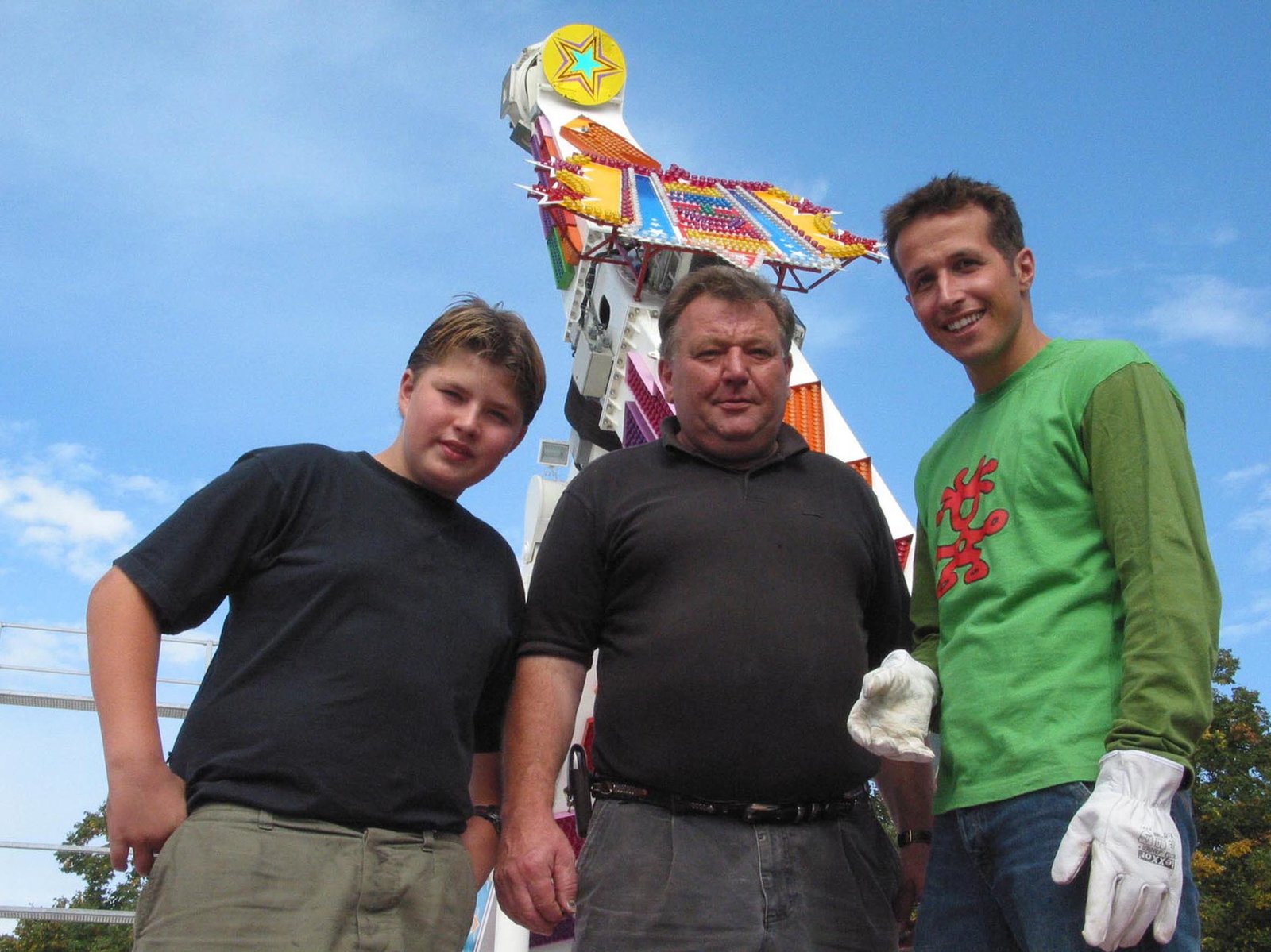 Auf geht's zur Wiesn!Da heißt es anpacken: Reporter Willi Weitzel (rechts) hilft auf dem Münchner Oktoberfest bei einer Schaustellerfamilie mit.Bild: © BR/megaherz