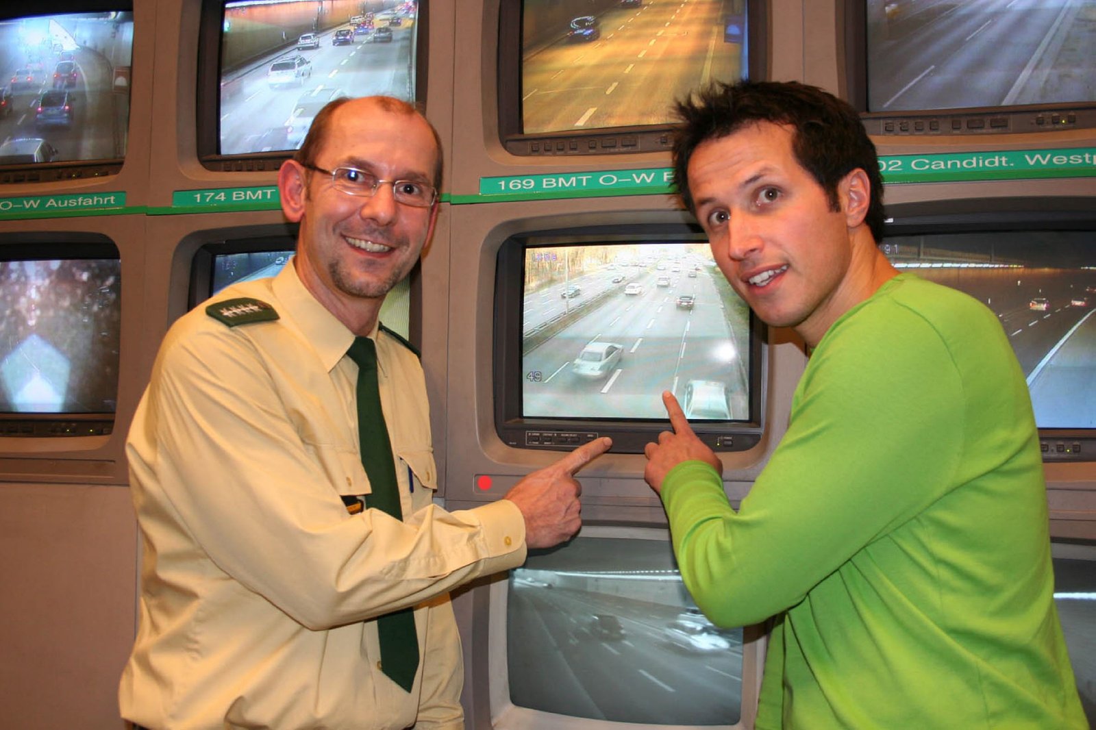 Was findet statt im Stadtverkehr?Willi mit Polizist Michael Reisch in der Verkehrsleitzentrale München.Bild: © BR/megaherz gmbh