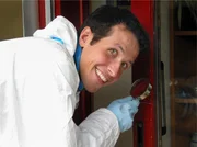 Wer kommt Verbrechern auf die Spur?Willi Weitzel ist mit der Lupe auf der Suche nach Spuren.Bild: © BR/megaherz
