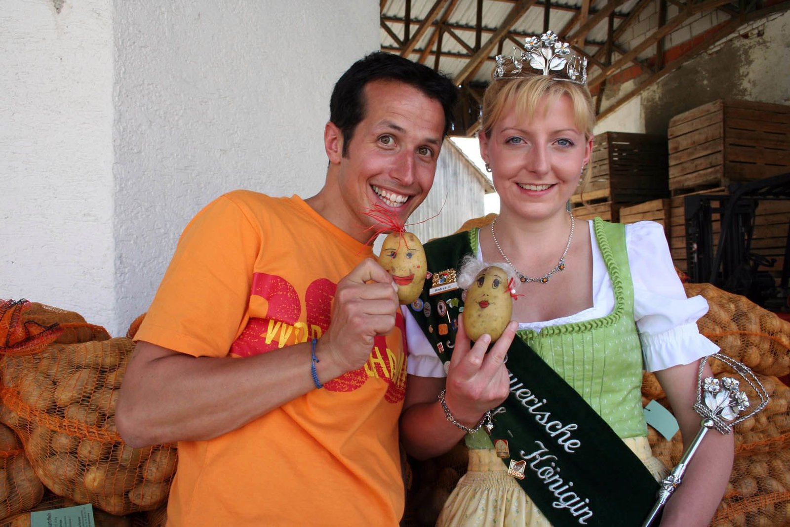 Wer ist der Held auf dem Kartoffelfeld?Willi und die bayerische Kartoffelkönigin Andrea Kübler.Bild: © BR/megaherz gmbh/