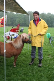 Was hält die Ponys auf Trab?Willi Weitzel erfährt alles über die Arbeit auf einem Gestüt und bekommt eine Reitstunde auf einem Pony. Steffi hat ihm eine geduldige Stute ausgesucht.Bild: © BR/megaherz