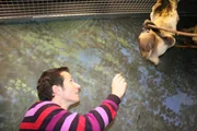 Wer schläft wie ein Murmeltier?Willi bringt einem Faultier im Grzimek-Haus vom Zoo Frankfurt sein Frühstück. Manche Tiere sind dort in der Nacht aktiv und schlafen dafür am Tag.Bild: © BR/megaherz