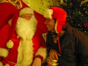 Was wünscht sich das Christkind zu Weihnachten?Willi mit einem Weihnachtsmann auf dem Nürnberger Christkindlesmarkt. Der kann ihm vielleicht verraten, wo er das Christkindl treffen kann.Bild: © BR/megaherz gmbh