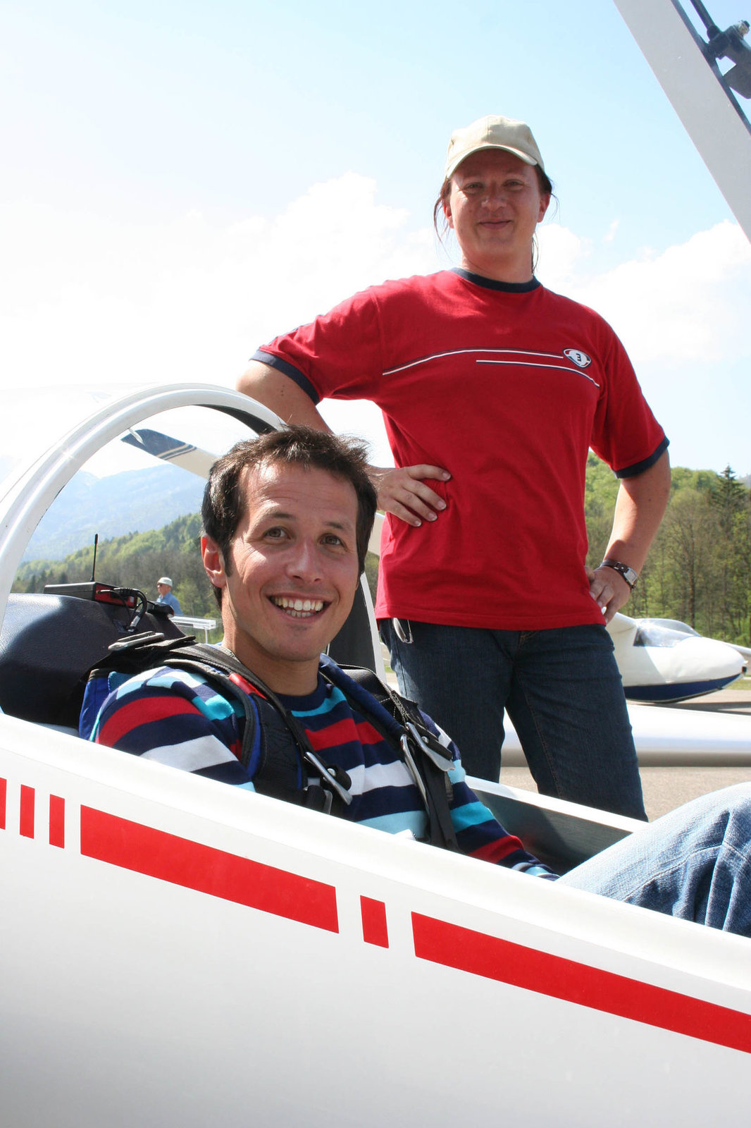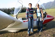 Wer segelt mit den Segelfliegern?Von links: Willi mit Segelfluglehrer Stefan Brockelt in Unterwössen.Bild: © BR/megaherz gmbh/