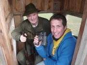 Wo hoppeln Hase und Kaninchen?Willi (rechts) mit Jäger Dieter Pfeilschifter auf dem Hochsitz.Bild: © BR/megaherz gmbh