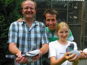 So geht's zu im Taubenschlag!Willi mit dem Taubenzüchter Friedhelm Spickenbohm und dessen Tochter. Jede einzelne Taube wird per Computer erfasst und in einen Lkw verladen.Bild: © BR/megaherz gmbh
