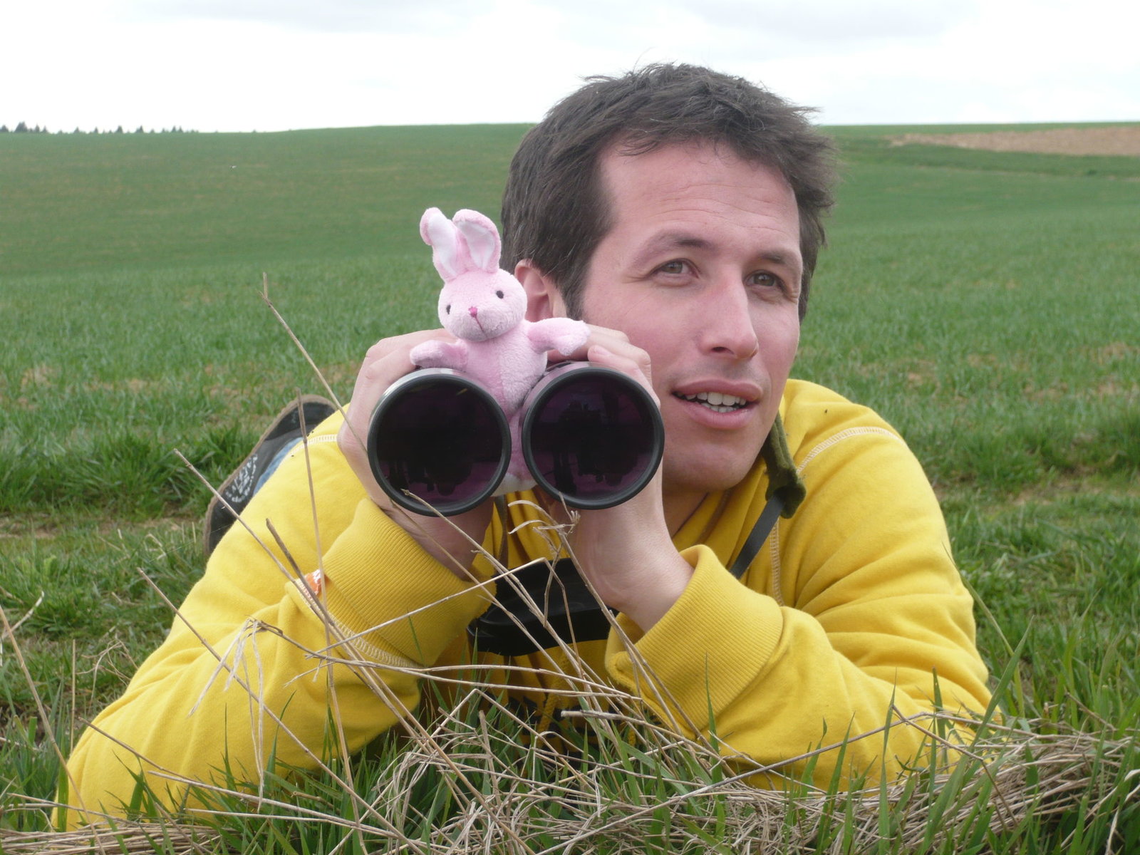 Wo hoppeln Hase und Kaninchen?Willi liegt mit dem Fernglas auf der Lauer.Bild: © BR/megaherz gmbh