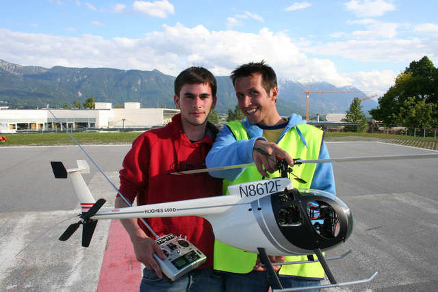Wer schraubt am Hubschrauber?Willi (rechts) mit dem Modellhubschrauberbauer Manuel Heiduczek.Bild: © BR/megaherz gmbh