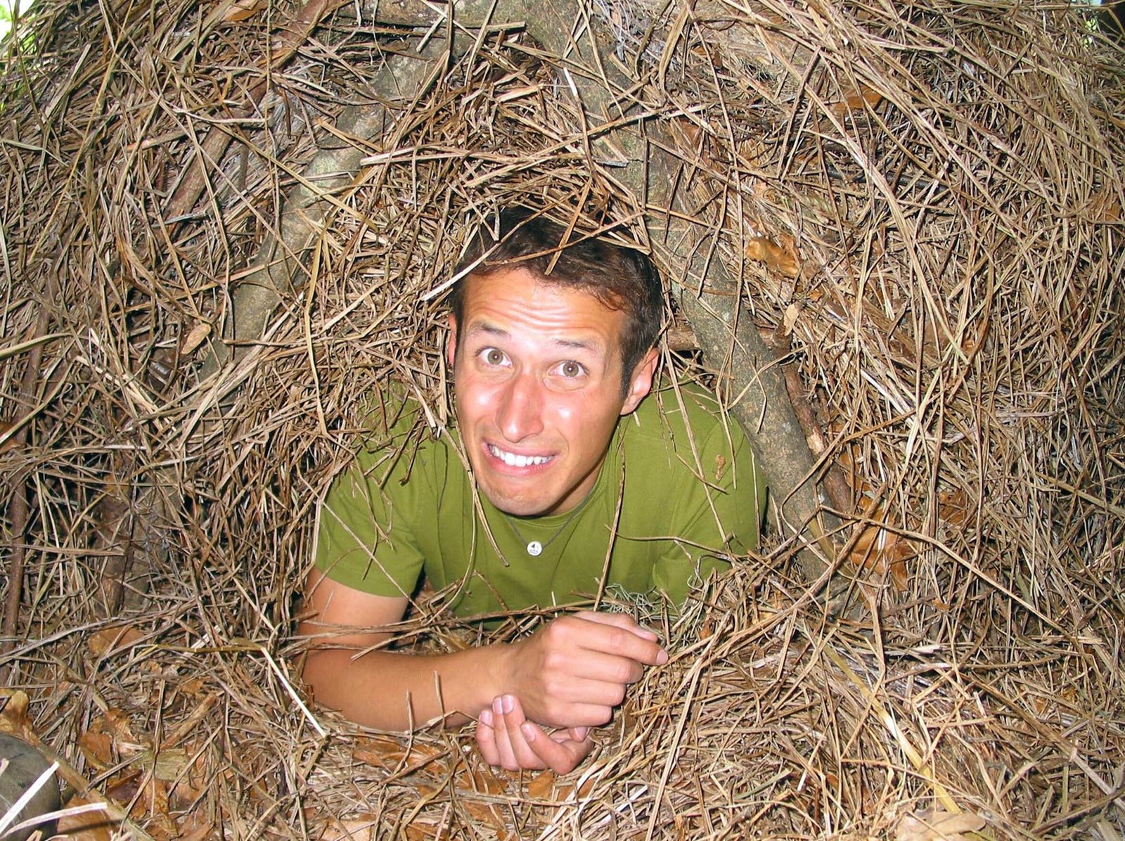 Wie geheuer ist das Abenteuer?Willi lernt, wie man eine Unterkunft für die Nacht baut, Feuer ohne Feuerzeug macht, Trinkwasser beschafft und etwas für den leeren Magen findet.Bild: © BR/megaherz