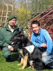 Wer kommt Verbrechern auf die Spur?Willi Weitzel (rechts) mit Peter Wolf und seinem Polizeihund Tasko.Bild: © BR/megaherz
