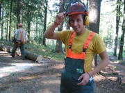 Wer hegt und pflegt und sägt im Wald?Forstmeister Hermann zeigt Willi die Grundlagen der Holzfällerei und selbstverständlich darf Willi helfen, eine Fichte zu fällen.Bild: © BR/megaherz