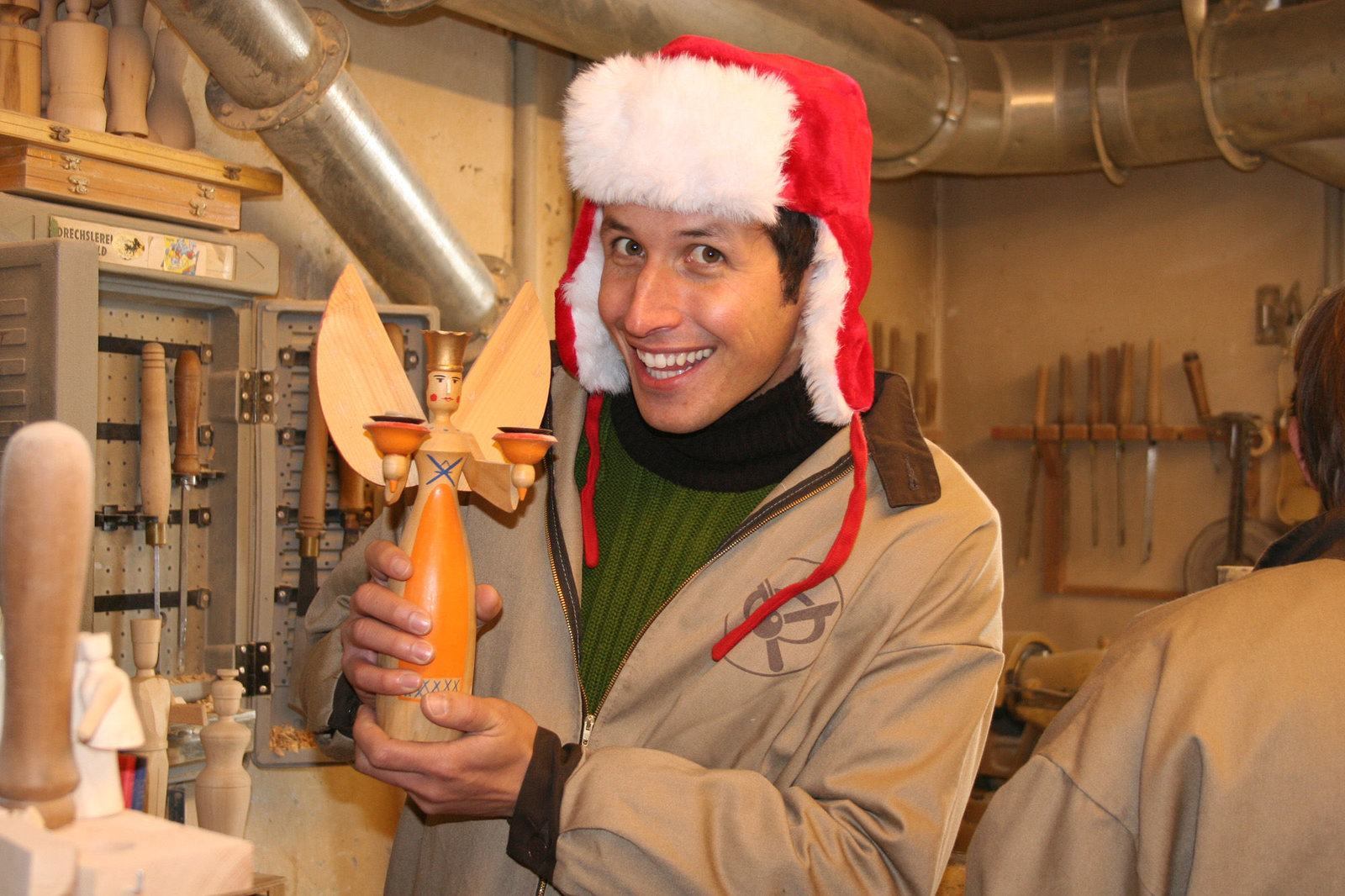 Wie himmlisch klingt die Weihnachtszeit?Willi mit einem Weihnachtsengel aus Holz. Heute ist Willi im Erzgebirge unterwegs.Bild: © BR/megaherz gmbh/megaherz gmbh