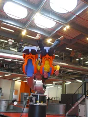 Was bewegt den Roboter?Willi Weitzel wird im Robocoster ordentlich durch die Luft gewirbelt. Anschließend erfährt er, wie so ein Roboter funktioniert.Bild: © BR/megaherz gmbh