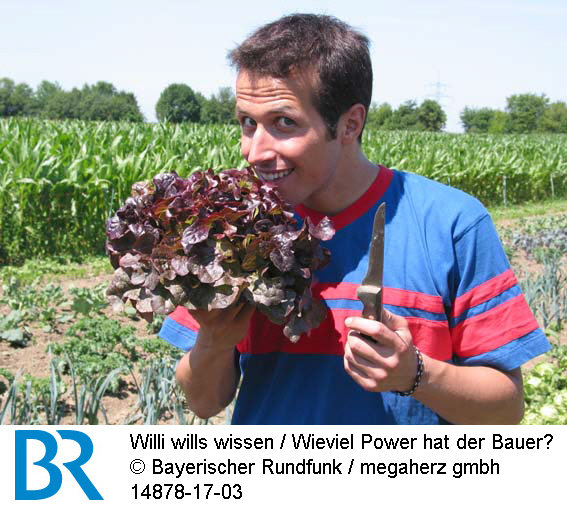 Wie viel Power hat der Bauer?Willi Weitzel schaut sich auf einem Bauernhof um und hilft bei der Salaternte.Bild: © BR/megaherz gmbh
