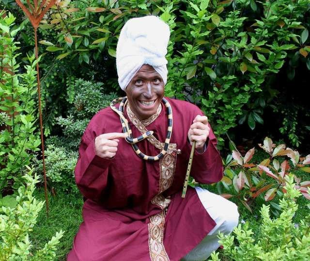 Wer kuschelt mit den Krabbeltieren?Mit Flöte, Schminke und Turban versucht sich Reporter Willi als waschechter indischer Schlangenbeschwörer.Bild: © BR/megaherz gmbh