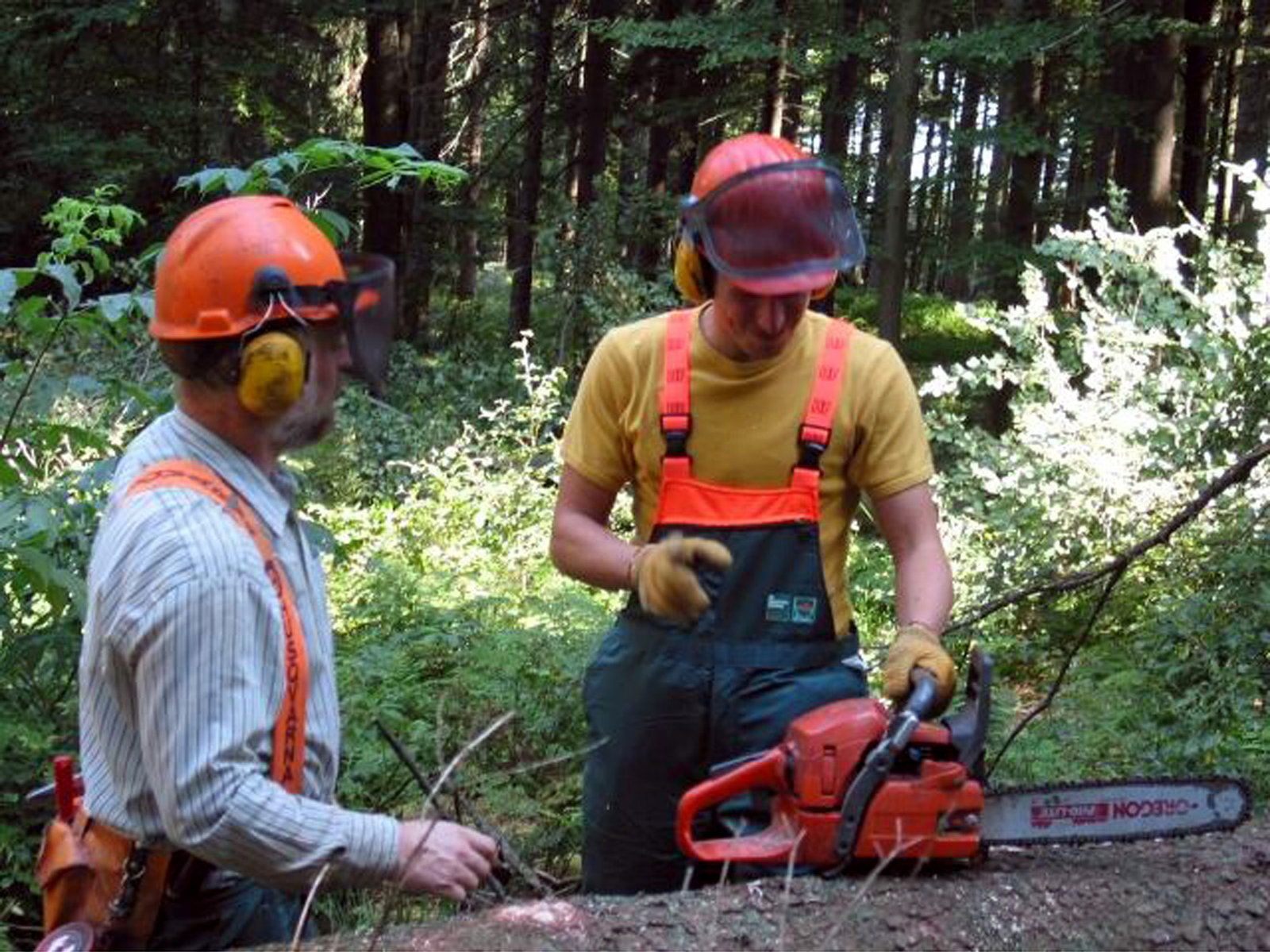 Wer vermöbelt den Wald?Willi versucht dem Holzfäller Max (links) bei der Arbeit im Wald zu helfen.Bild: © BR/megaherz