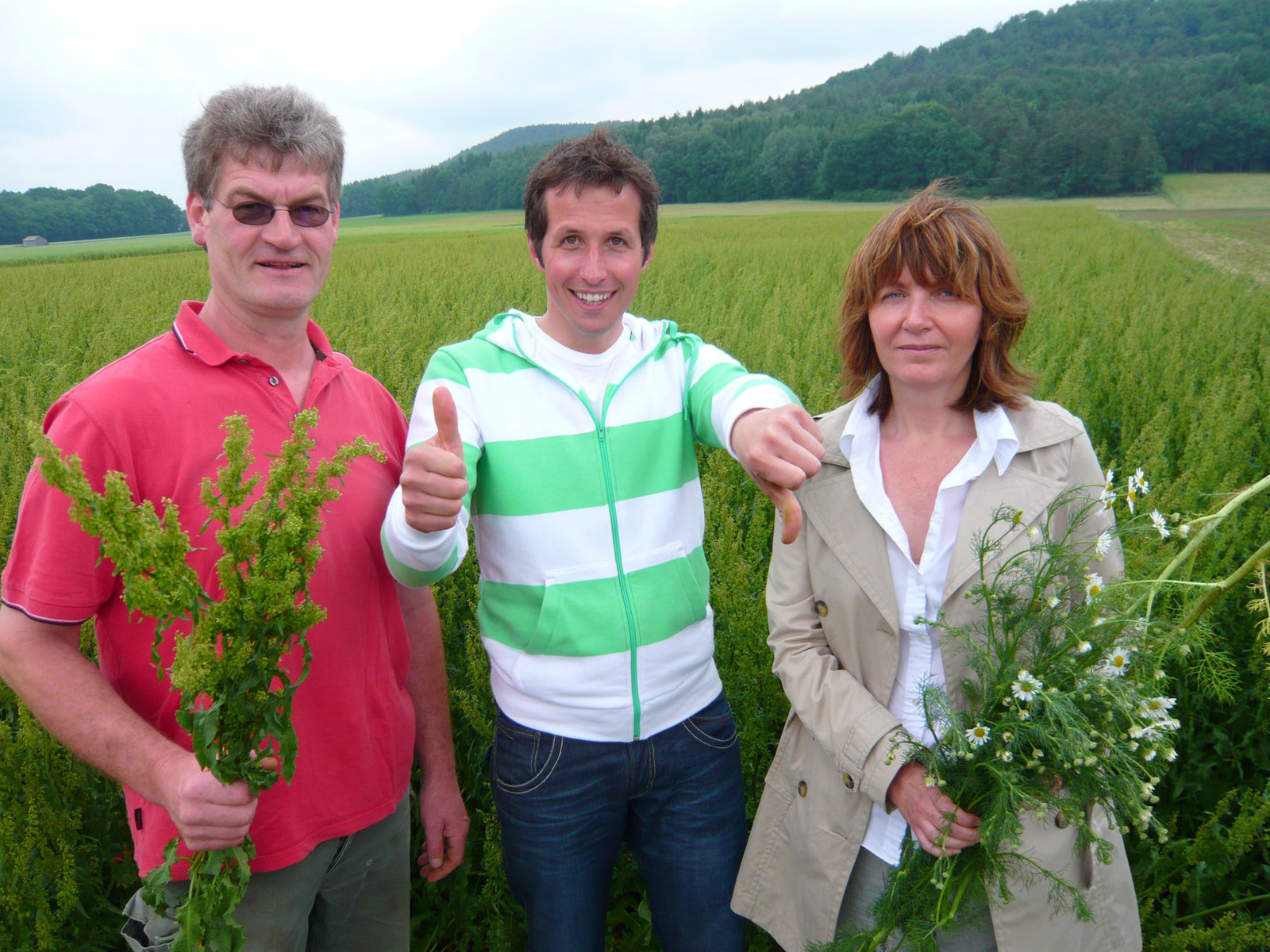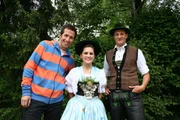 Welche Bräuche brauchen Bayern?Willi (li.), Regina Schützinger (Mi.) und Josef Zollner (re.) vor dem Schuhplattl-WettbewerbBild: © BR/megaherz