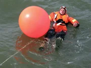Wer hilft bei SOS auf See?Willi testet eine Schutzausrüstung im Wasser. © BR/megaherz - Honorarfreie Verwendung gemäß der AGB im engen inhaltlichen redaktionellen Zusammenhang mit genannter Sendung bei Nennung "Bild: BR/megaherz" (S2). Andere Verwendung nur nach Absprache. KI.KA Marketing & Kommunikation Tel.: 0361/218-1826 mail: bildredaktion@kika.deBild: © KiKA