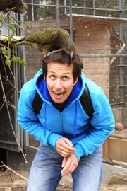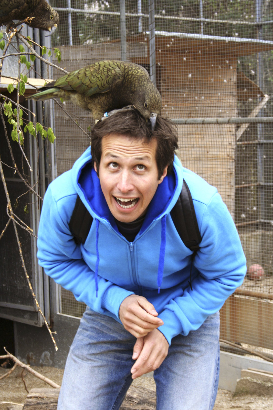 Wie schlau sind Tiere?Willi Weitzel mit einem Kea auf dem Kopf.Bild: © BR/megaherz gmbh