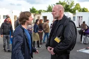 Gegen den StromWilsberg (Leonard Lansink, l.) und Ekki (Oliver Korittke, r.) beobachten unauffällig das Geschehen.Bild: © ZDF und Thomas Kost