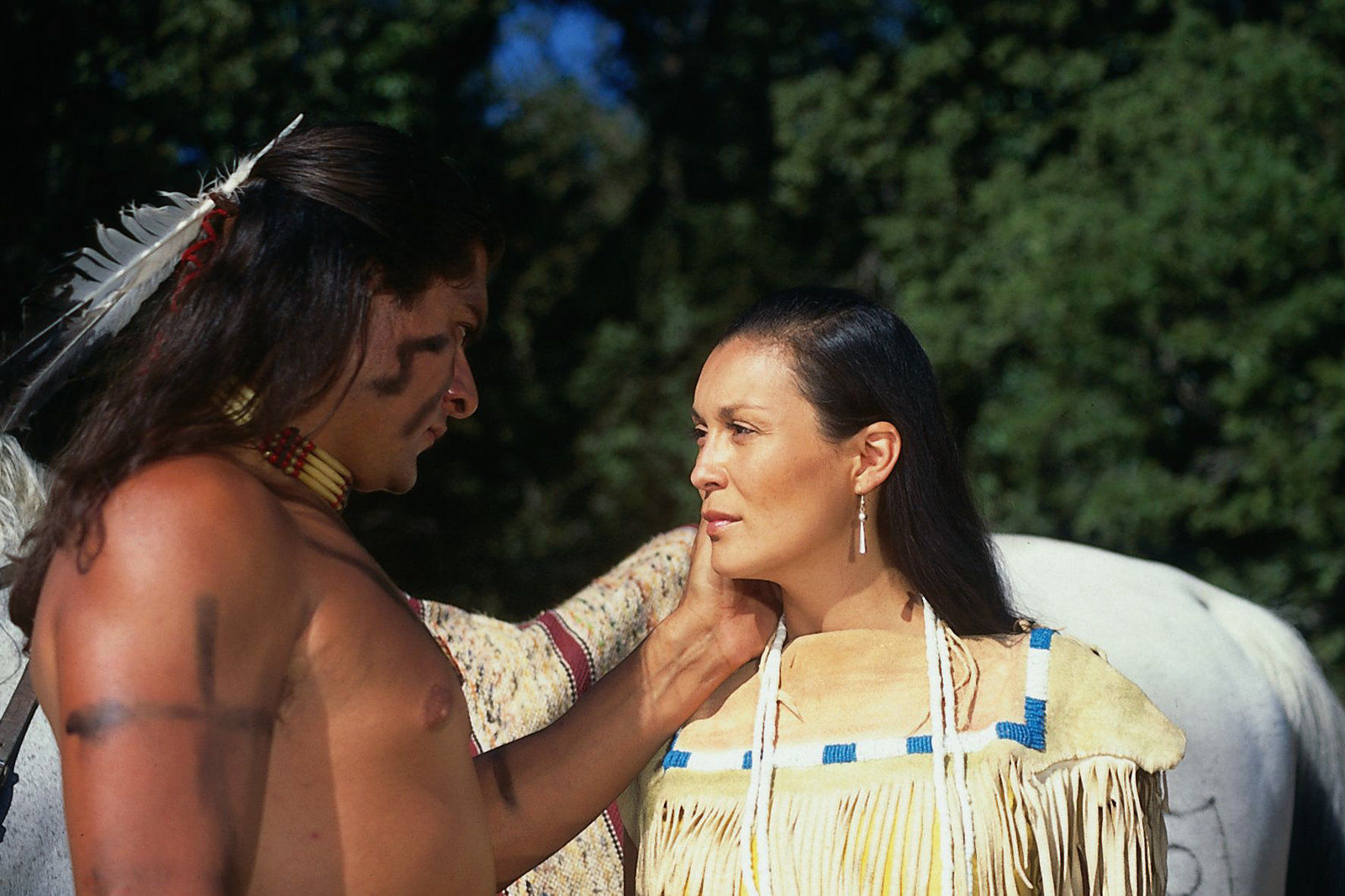 Teil 22. Kish-Kao-Ko (Patrice Martinez) gesteht Wash-Ti (Jonathan Joss) ihre Zuneigung und versucht, ihn von Kämpfen abzuhalten.Bild: © ZDF und Peter W. Engelmeier; Ziegler Film Gmbh & Co KG