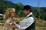 Teil 2Hermann (Christoph Moosbrugger) versucht Mary (Candice Daly) auf seine Seite zu ziehen. Sie soll sich von John Mayotte und Winnetou fernhalten.Bild: © ZDF und Peter W. Engelmeier; Ziegler Film Gmbh & Co KG.