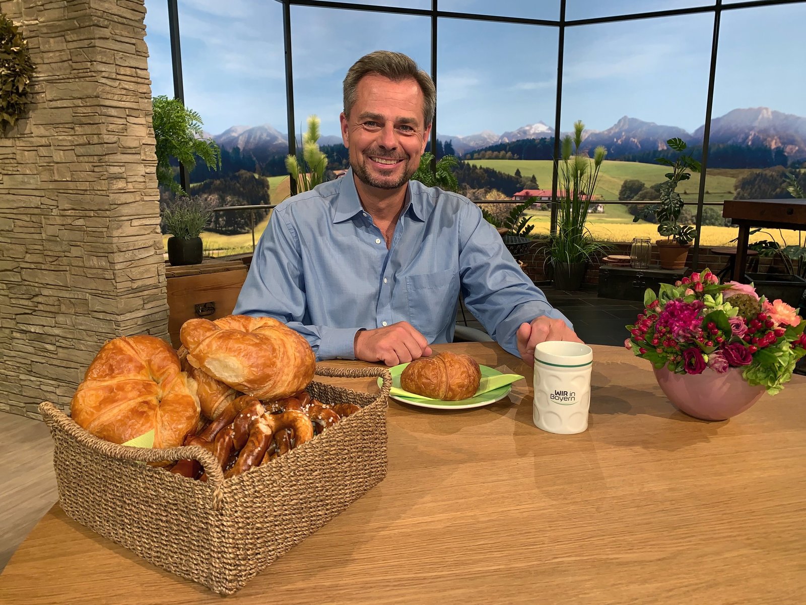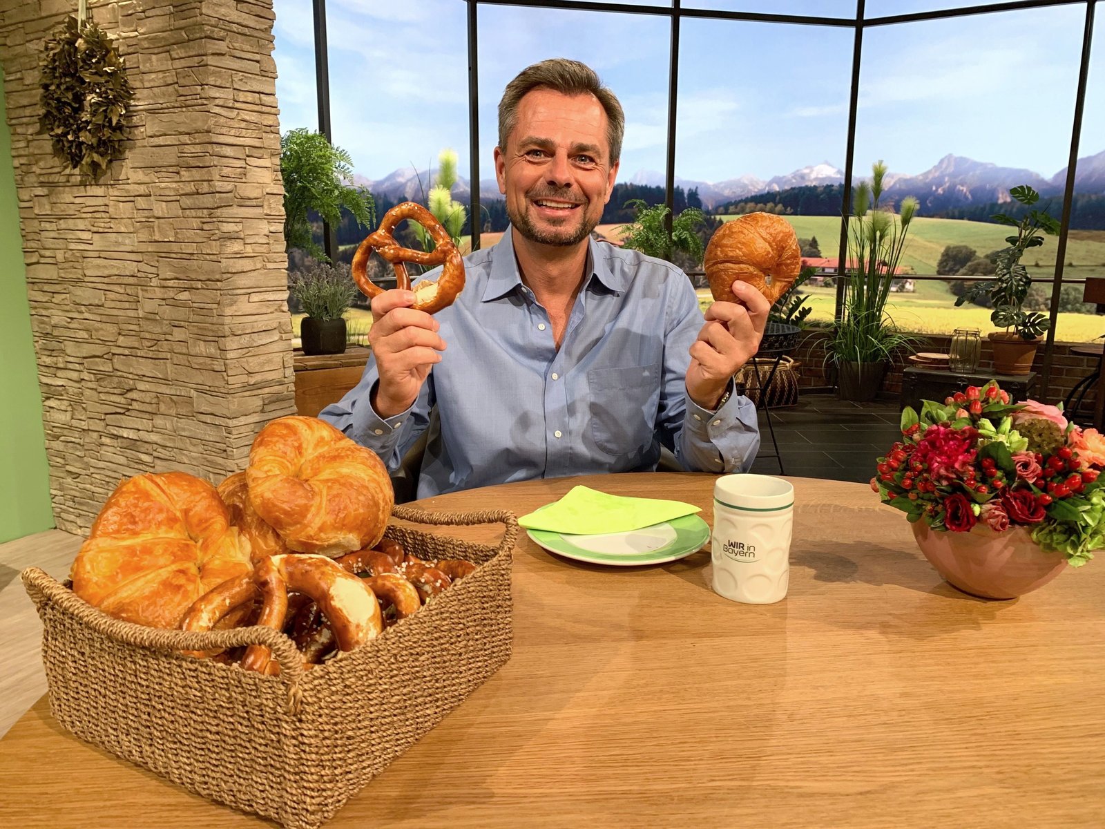 Moderator Michael Sporer mit Breze und Croissant.Bild: © BR/Klaus Resch