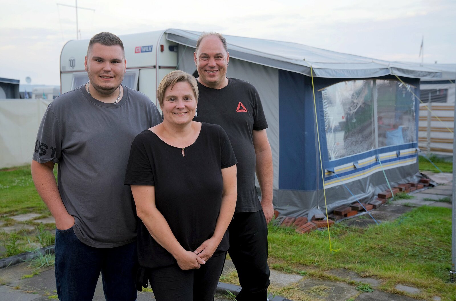 Familie Hesse aus Bad SalzuflenJannik, Nicole und Jo?rg Hesse (r) vor ihrem ersten eigenen Wohnwagen in Dangast an der Nordsee.Bild: © WDR