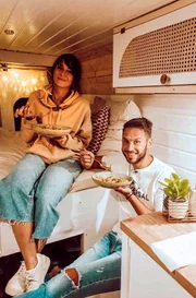 Smiljka und Dario aus Halle (Westfalen)Dario und Smiljka (l) in ihrem Camper mit der ersten selbstgekochten Mahlzeit.Bild: © WDR/sagamedia