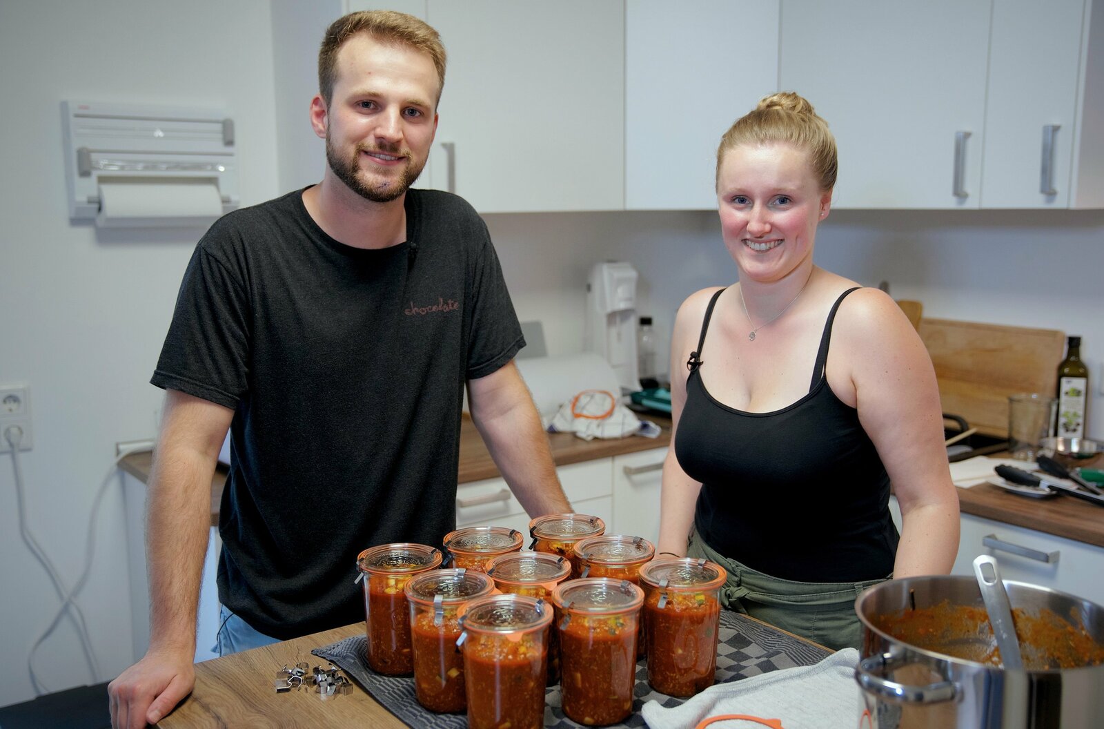 Cedric und Jacqueline aus HerneCedric (l) und Jacqueline kochen Essen fu?r ihre Norwegenreise ein.Bild: © WDR/sagamedia