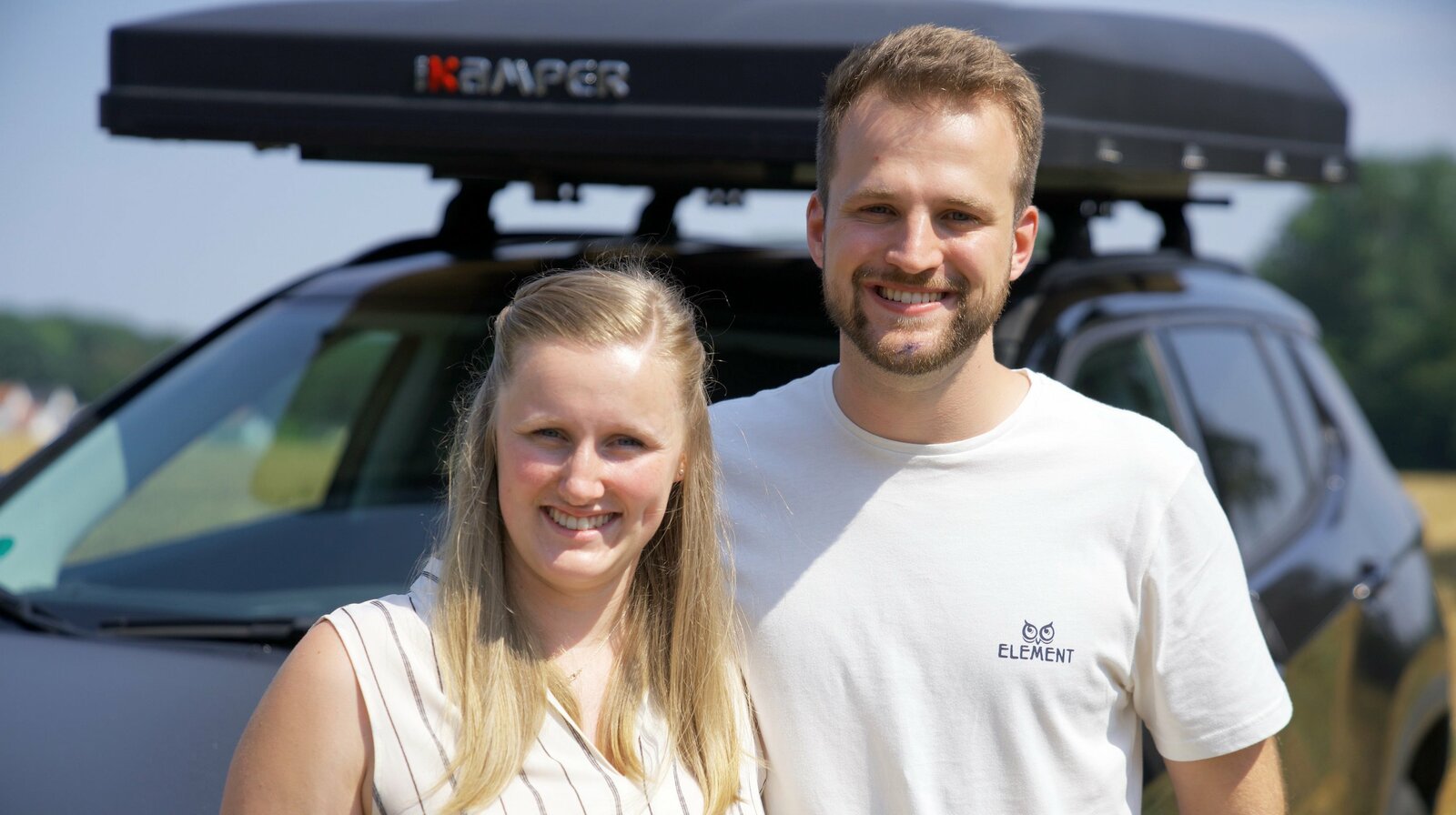 Cedric und Jacqueline aus HerneJacqueline (l) und Cedric mit ihrem Gela?ndewagen und Dachzelt.Bild: © WDR/sagamedia