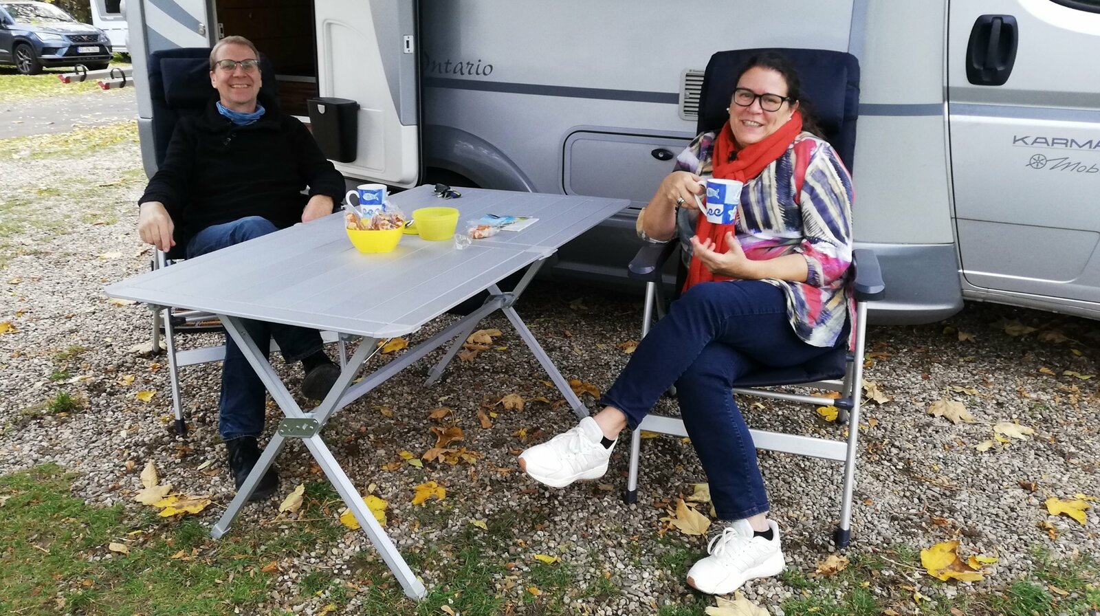 Klaudia und Christoph aus LangerweheNach diversen Flug- und Autoreisen wollen sie künftig in einem eigenen Wohnmobil Deutschland erkunden - und das, obwohl Klaudia (r) in ihrem Leben noch keine Nacht in einem Wohnmobil geschlafen hat und Christophs einzige Campingerfahrung 20 Jahre zurückliegt. Das Paar hat sich ein 11 Jahre altes, fertig ausgebautes Reisemobil gekauft.Bild: © WDR/sagamedia