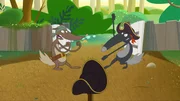 Der Wolf, der ein Akrobat sein wollteJeder, der die Regeln bricht, wird festgenommen.Bild: © KiKA/Samka Productions