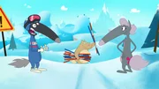 Der Wolf, der ein Yeti sein wollteGroß-Ludwig steckt die Piste für das Rennen ab.Bild: © KiKA/Samka Productions