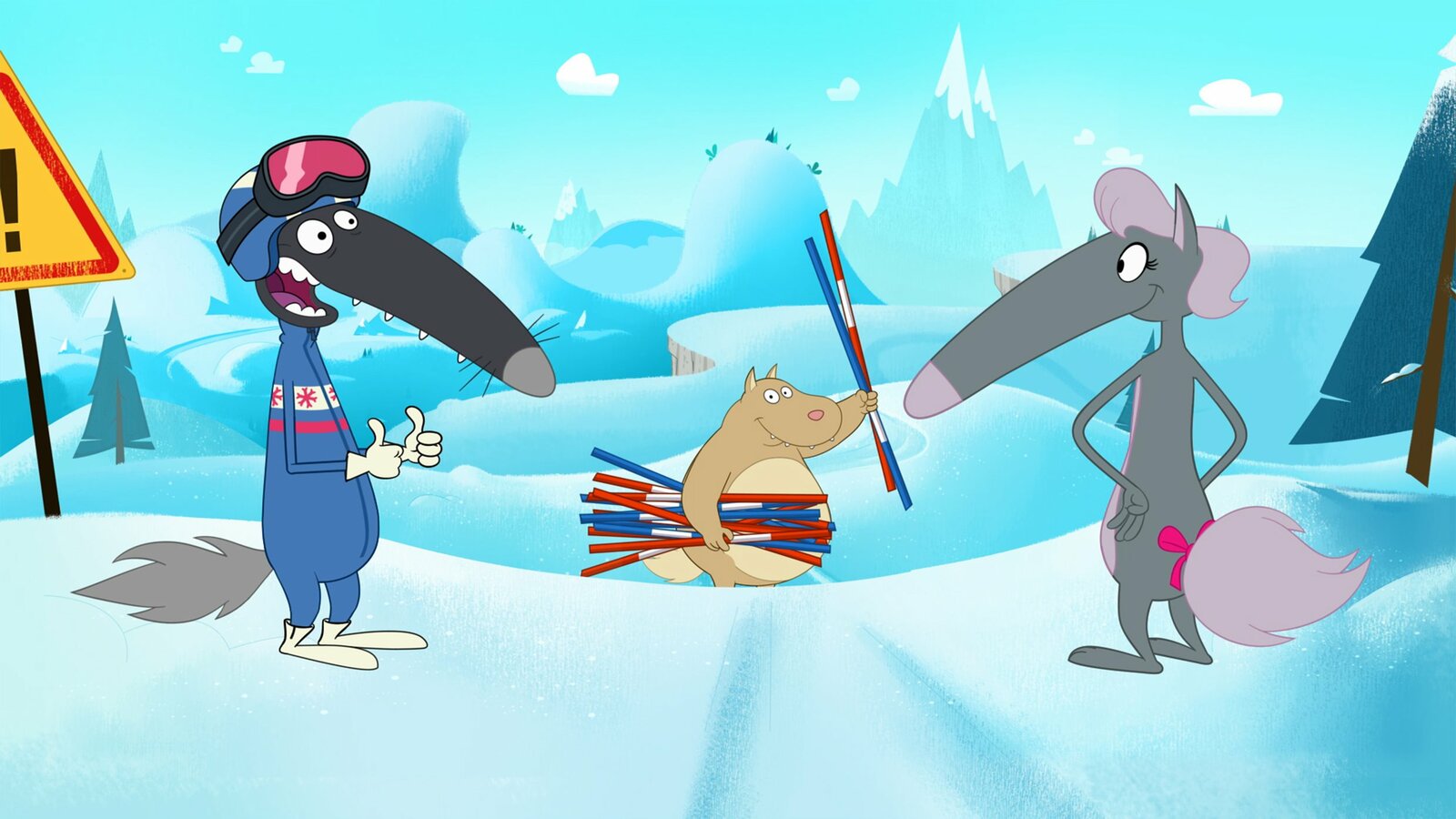 Der Wolf, der ein Stuntman sein wollteWolf und Wolfine liefern sich ein hartes Kopf-an-Kopf-Rennen.Bild: © KiKA/Samka Productions
