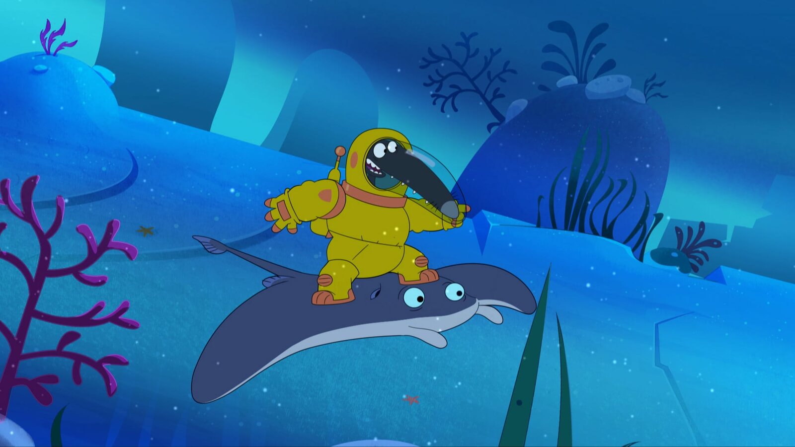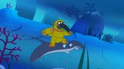Der Wolf, der den Meeresboden erkunden wollteAm Meeresboden schließt Wolf Freundschaft mit einem Rochen.Bild: © KiKA/Samka Productions