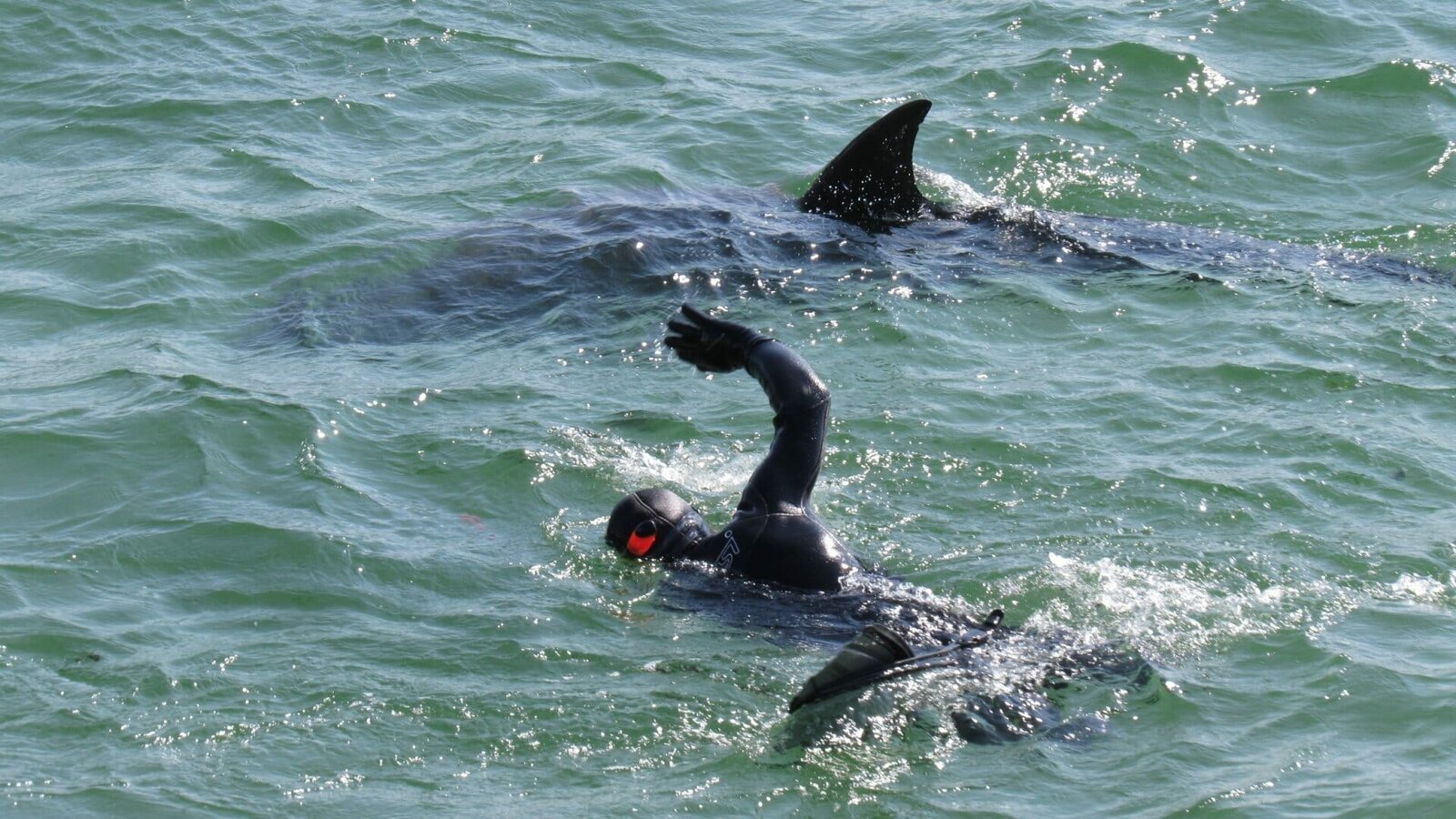 Feuer-Wasserfall und leuchtende HaieDelfindame Dusty besucht die Schwimmer in County Clare.Bild: © ZDF und Leah Arnold-Redman/Leah Arnold-Redman