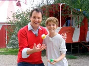 Familienurlaub in NRWModerator Stefan Pinnow (l) besucht gemeinsam mit dem 14-jährigen Louis Hofmann u.a. die Zirkusjugendherberge in Nettetal.Bild: © HR/WDR/R. Hofer