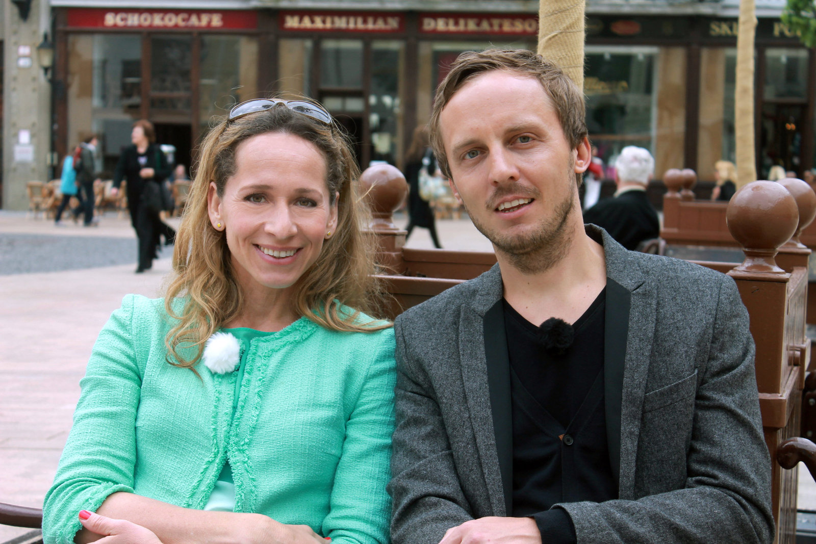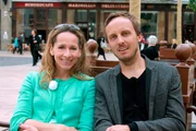 Kreuzfahrt auf der Donau - von Passau bis BudapestModeratorin Tamina Kallert mit Krimi-Autor Michal Hvorecky, der ihr in Bratislava eine exklusive Stadtführung bietet.Bild: © WDR/Richard Hofer