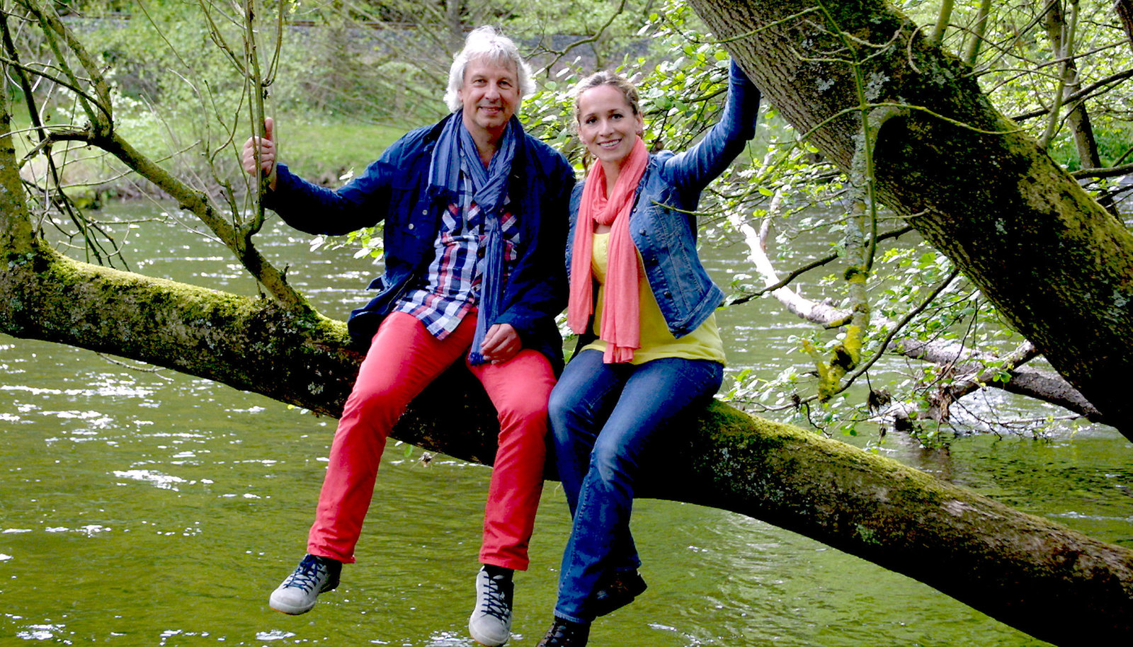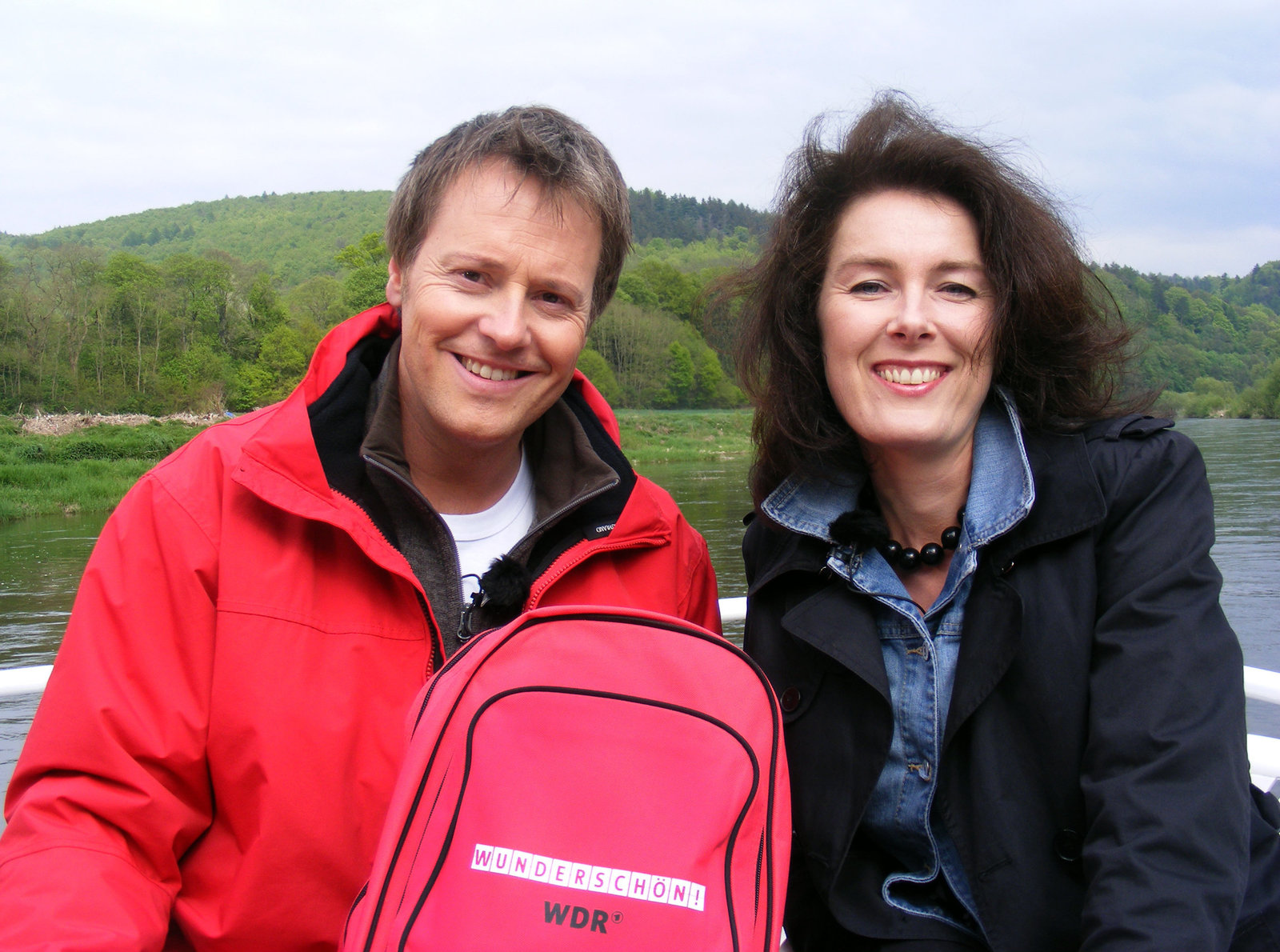 Märchenhafte WeserModerator Stefan Pinnow (l) geht auf eine märchenhafte Reise durch das Weserbergland und wird dabei von der Schauspielerin und Theaterregisseurin Johanna Kunze (r) begleitet.Bild: © HR/WDR/Richard Hofer