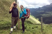 Genusswandern in der Schweiz - Von Hütte zu Hütte im Appenzeller LandTamina Kallert (r) in den Bergen im Appenzeller Land mit ihrem Begleiter Jürg Steigmeier.Bild: © WDR/Elke Haake