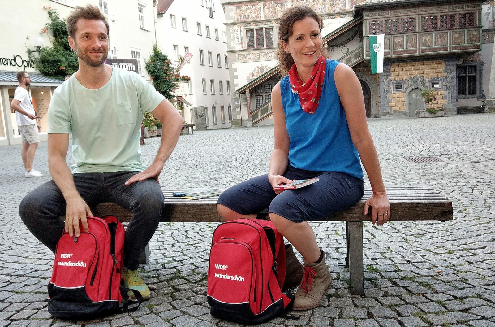 Vom Bodensee nach Neuschwanstein (1)In Lindau am Bodensee starten Anne Willmes und Daniel Aßmann ihre Reise entlang der Deutschen Alpenstraße – zu Fuß, mit dem Rad und dem Auto.Bild: © WDR/Norman Born