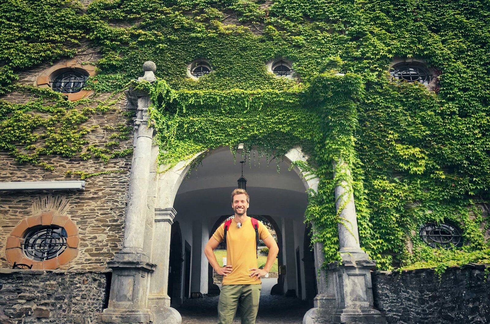 Abenteuer SauerlandModerator Daniel Aßmann vor Burg Schnellenberg.Bild: © WDR/Bavaria Entertainment GmbH