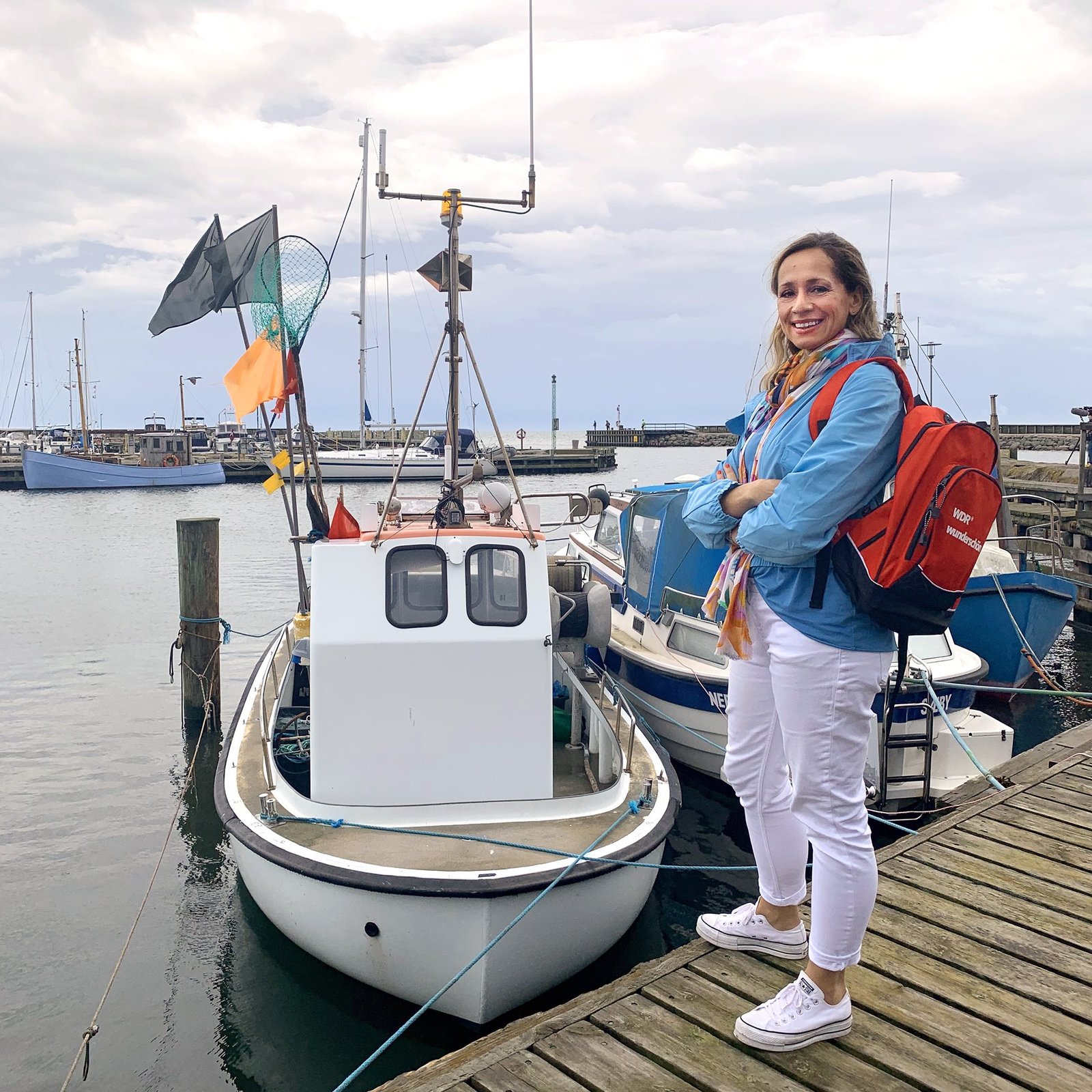 Nordjütland - Dänemarks wilde KüstenModeratorin Tamina Kallert am kleinen Yachthafen des beliebten Ferienortes Sæby an der ruhigen Ostküste von Nordjütland.Bild: © WDR/Caro Wagner