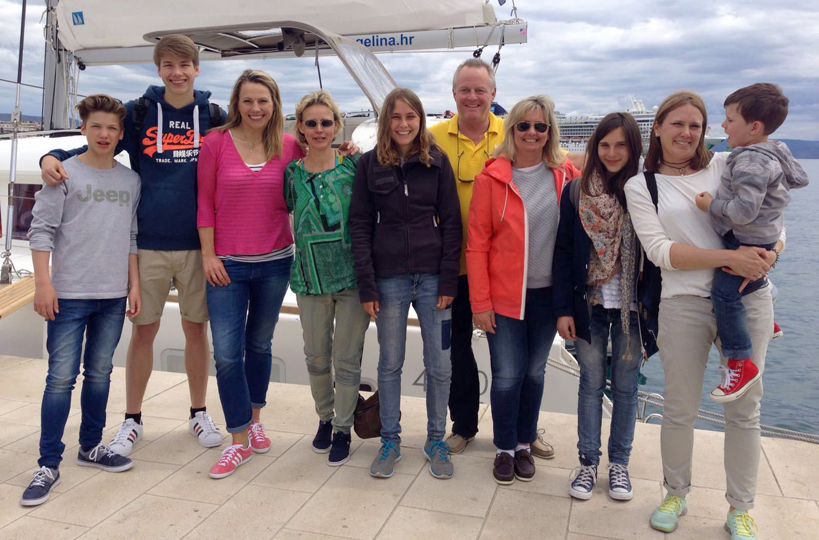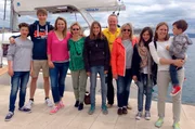 Auf dem Segelboot in KroatienKroatien ist ein Traumziel für Segler - und auch für Familien erschwinglich. Moderatorin Andrea Grießmann (3.v.l.) wagt das Abenteuer zusammen mit zwei anderen Müttern und fünf Kindern zwischen 4 und 17 Jahren: eine Woche Inselhopping mit einem Katamaran. Dank des Skipper-Ehepaares werden die Landratten schnell zu echten Seebären.Bild: © WDR/Anja Koenzen
